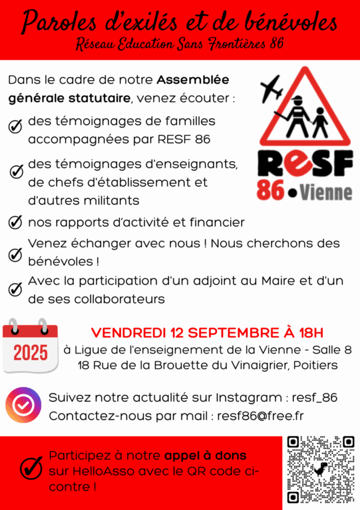 L’AG sera précédée de témoignages et/ou de table ronde : Paroles d’exilés et de bénévoles.