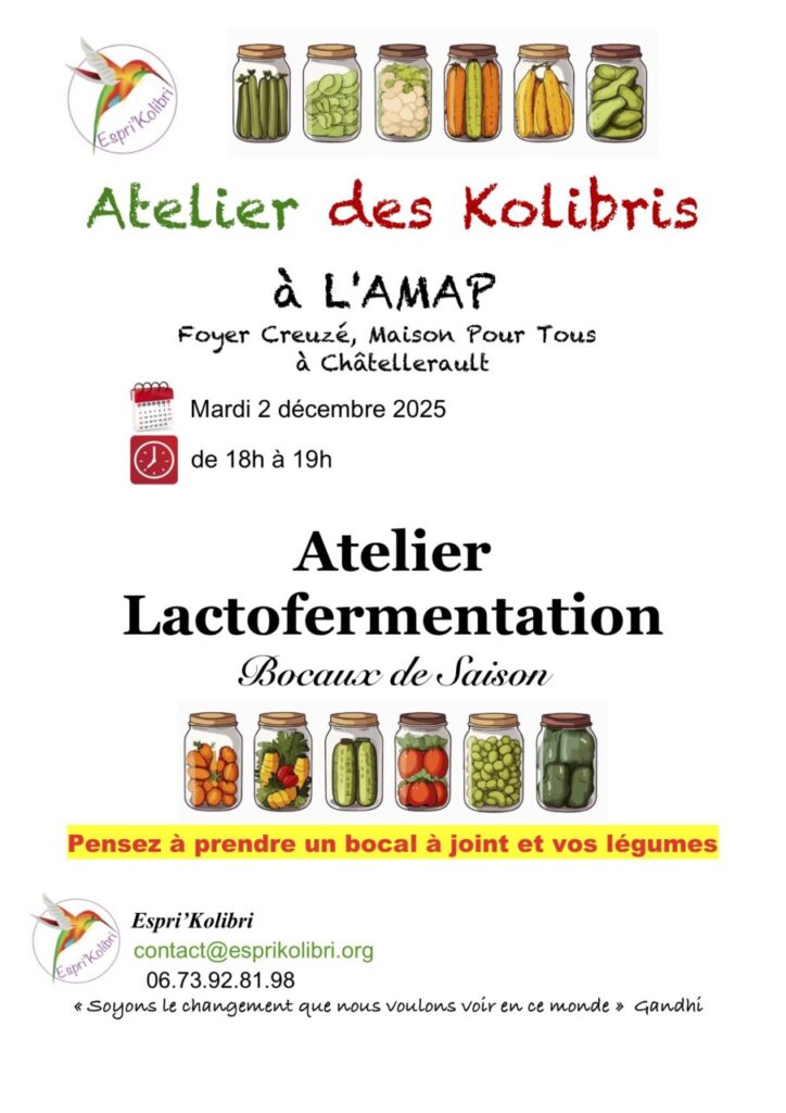 An et Hugo proposent un atelier cuisine Lactofermentation de saison, avec vos bocaux et vos légumes. Vous repartirez avec votre préparation et tous les trucs pour réussir une lactofermentation.
