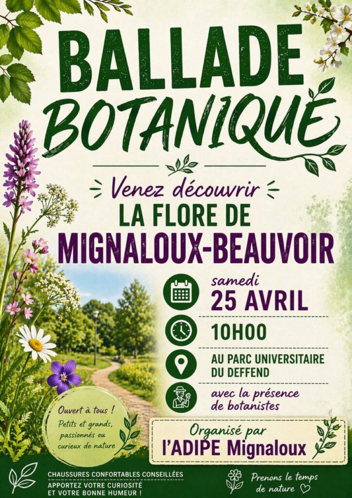 Samedi 25 avril 2026 de 10h à 12h : Invitation à une balade botanique du Jardin botanique universitaire du Défend de Mignaloux-Beauvoir, organisée par l’ADiPE M-B, Association de Défenses de nos Intérêts Publiques et de l’Environnement de Mignaloux-Beauvoir