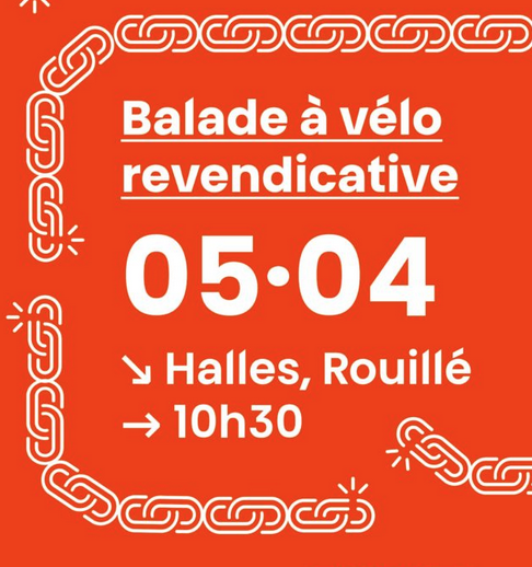 Samedi 5 avril : balade à vélo revendicative qui partira des halles de Rouillé à 10 h 30.