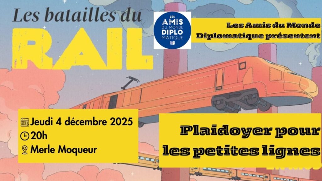 Jeudi 4 décembre à 20h : « Café Diplo » sur le thème « Les batailles du rail : plaidoyer pour les petites lignes » au Merle Moqueur, 16 Boulevard Blossac à Châtellerault.