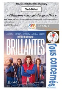 C’est à Chauvigny vendredi 9 février à 20h30 : ciné-débat sur l’illettrisme à partir du film « Brillantes » , participation de l’ANLCI (association nationale de lutte contre l’illettrisme) et de LECRIT. (association chauvinoise de lutte contre l’illettrisme)