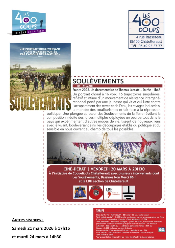 Ciné débat « Les soulèvements » à Châtelleraut.