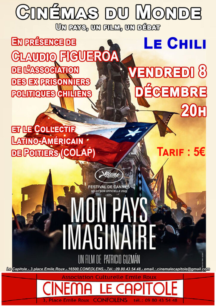 Nous aurons l’honneur d’accueillir pour le débat, Claudio FIGUEROA, de l’Association des ex-Prisonniers Politiques Chiliens, et de deux représentantes du Collectif Latino Américain de Poitiers ( COLAP).