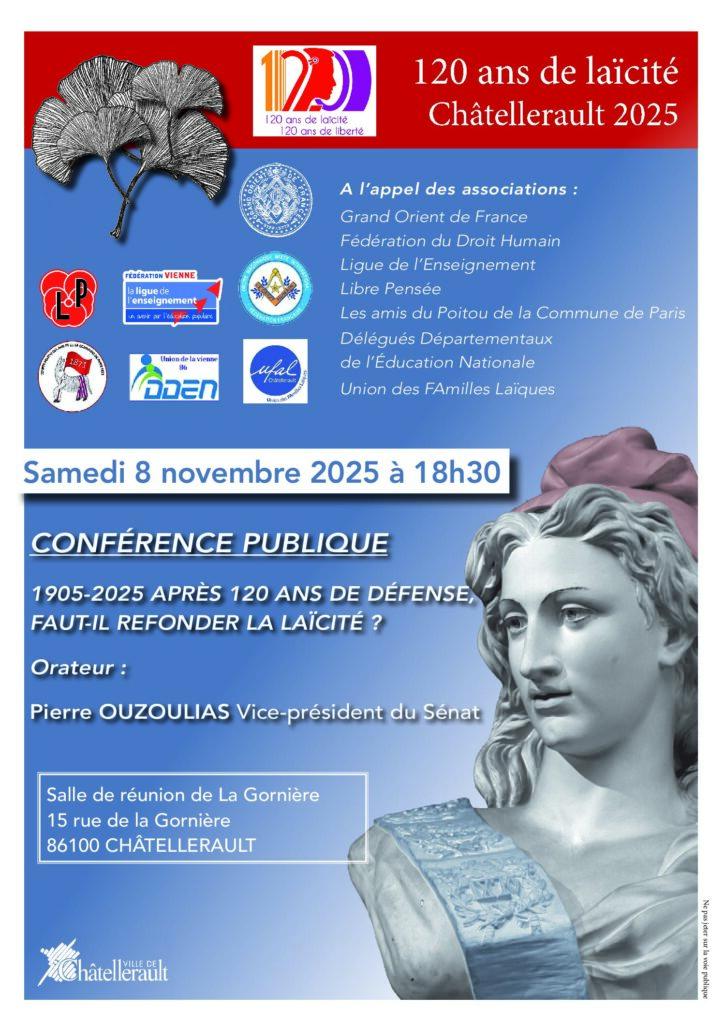 • Conférence à Châtellerault : « 1905-2025 après 120 ans de défense, faut-il refonder la Laïcité ? »