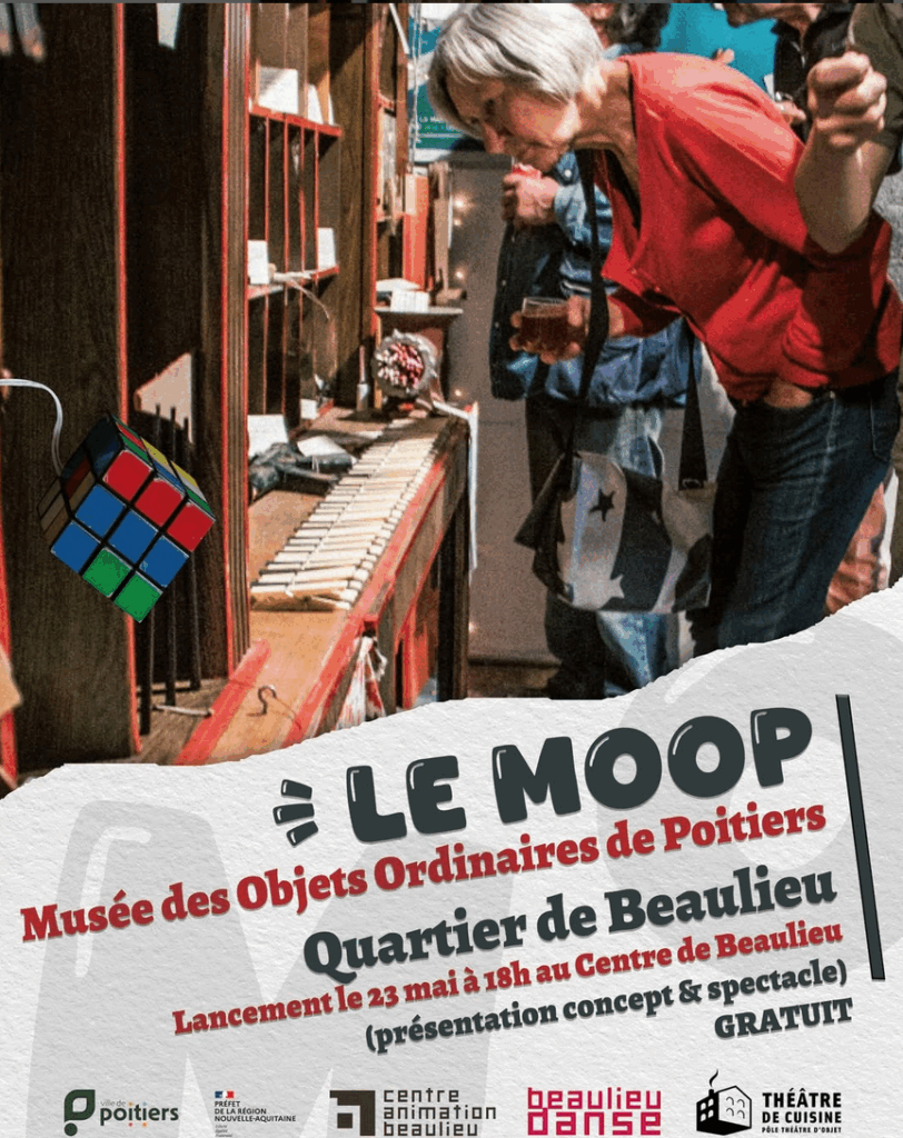 Le MOOP, c’est le Musée des Objets Ordinaires de Poitiers : ouverture prévue par la Compagnie du Théâtre de Cuisine/Centre d’Animation de Beaulieu. Un projet artistique et participatif et la création de la Collection Beaulieu 2025.