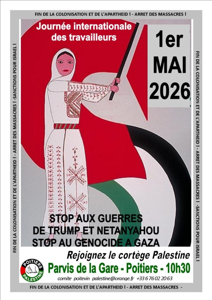 A Poitiers, rendez-vous avec le cortège Palestine sur le parvis de la gare à 10 h 30.