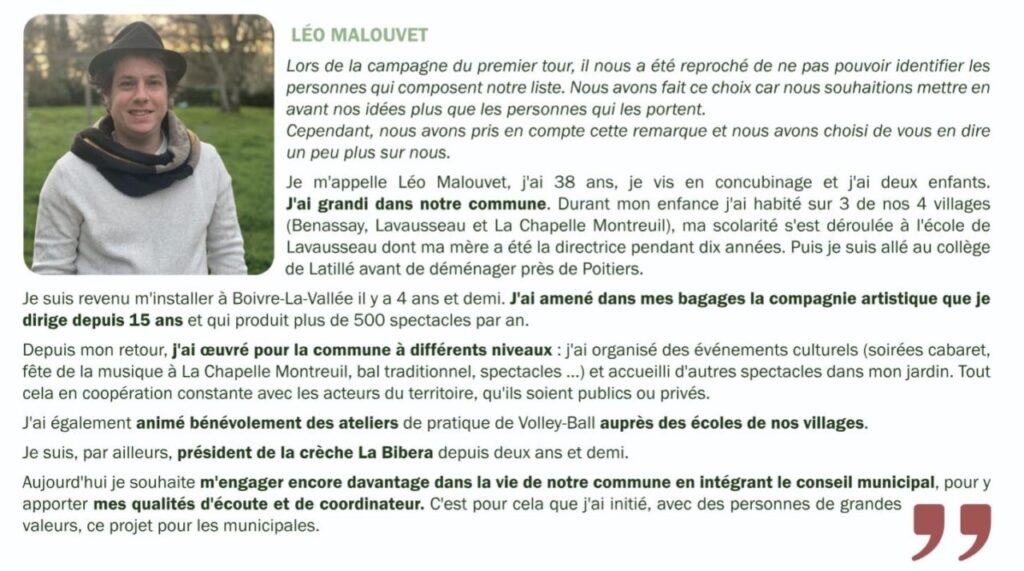 Elections municipales 2026 à Boivre-la-Vallée Détails de l'événement Date: 19 mars 2026 20:30 – 22:30 Nous invitons les habitant.es à venir échanger avec nous jeudi 19 Mars à 20h30, salle de la Boivre à Lavausseau ! . . Partager : Partager sur Facebook(ouvre dans une nouvelle fenêtre) Facebook Envoyer un lien par e-mail à un ami(ouvre dans une nouvelle fenêtre) E-mail Partager sur LinkedIn(ouvre dans une nouvelle fenêtre) LinkedIn Partager sur Telegram(ouvre dans une nouvelle fenêtre) Telegram Partager sur WhatsApp(ouvre dans une nouvelle fenêtre) WhatsApp Partager sur Mastodon(ouvre dans une nouvelle fenêtre) Mastodon Partager sur Bluesky(ouvre dans une nouvelle fenêtre) Bluesky