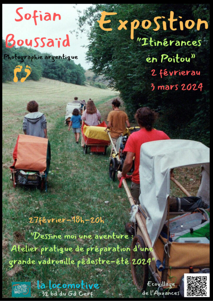 Une exposition exceptionnelle dédiée à des « voyages en charrettes » partagés entre amis depuis une douzaine d’années. Loin de revendiquer des performances physiques incroyables, l’idée est plutôt de partager un mode de vacances low cost, bas carbone, low stress… Rendez vous à la La Locomotive (ex PlanB, 32 bvd du Grand Cerf) le vendredi 2 février à partir de 18h pour un petit vernissage. Vous y verrez une petite présentation des voyages et Sofiane Boussaid, le jeune photographe qui a accompagné le voyage de cette année exposera ses photos. Le vendredi 2 c’est aussi la soirée Bal trad à la Loco, les ami du trio OÔO viendront ambiancer le dance floor à 20H30. (il y a un atelier danse à 18h30). Sinon, le 27 février, une petite soirée pratique pour organiser une grande vadrouille à l’été 2024… à 20… 30… 200 personnes, à pied à travers le territoire..