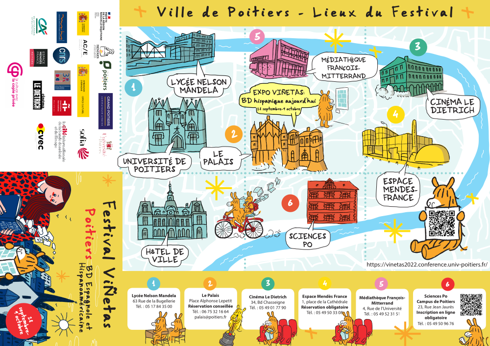 Du 28 septembre au 9 octobre 2022 se tiendra, à Poitiers, la seconde édition du festival ViÑetas, consacré de manière exclusive à la bande dessinée espagnole et hispano-américaine et, de ce fait, unique en France. Ces dernières décennies ont vu l’Espagne et les pays d’Amérique hispanique connaître un véritable boom du neuvième art, porté par des auteurs et/ou illustrateurs de talent, internationalement reconnus, dans le sillage d’illustres représentants tels que Miguelanxo Prado, Miguel Gallardo, Carlos Giménez, Kim, Quino ou encore Ana Miralles. (lire la suite et trouver le programme complet ici)