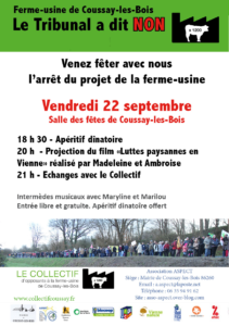 Fêtons l’arrêt du projet de la ferme usine de Coussay les Bois