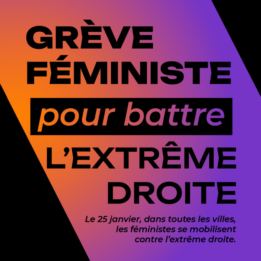 Membre de la Coordination féministe, F.R.A.P. (Féministes révolutionnaires à Poitiers) réponds à l’appel à la grève féministe pour battre l’extrême droite en organisant piquet de grève et rassemblement samedi 25 Janvier place Notre-Dame à partir de 14h (discours et prise de parole à 15h00).