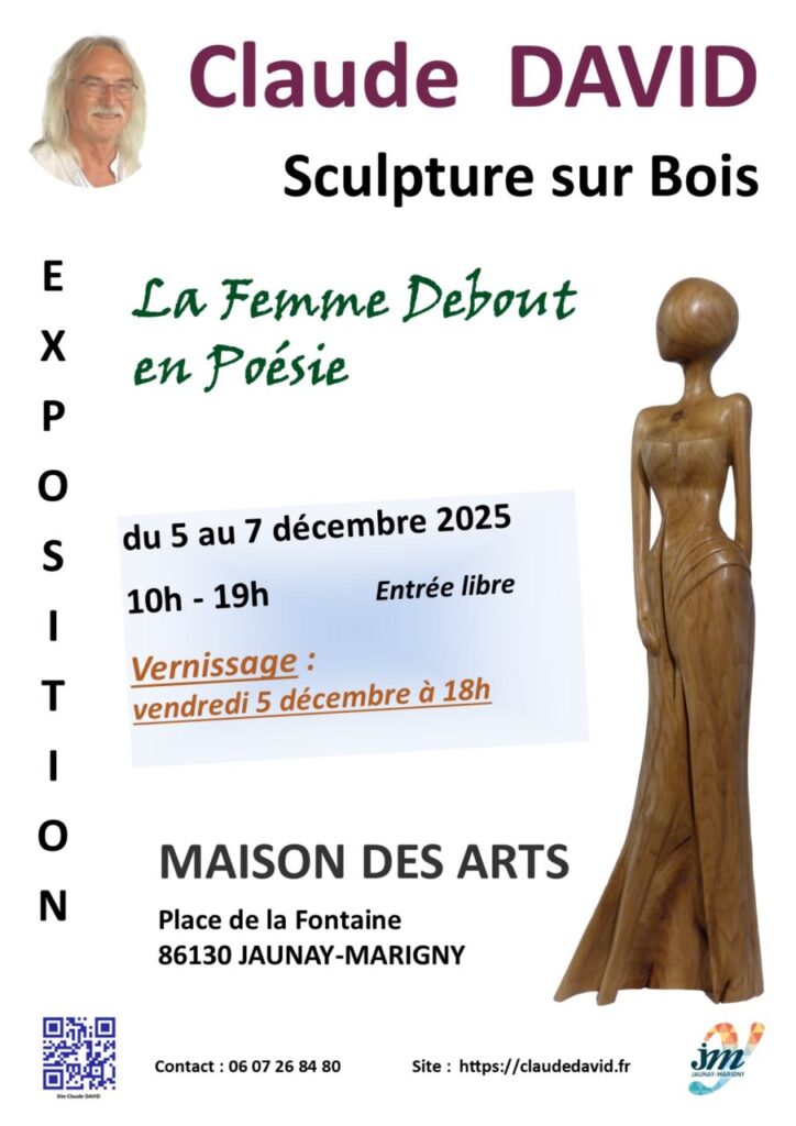 Pour Claude DAVID, le monde est fou ou maladroit. Alors, il choisit la voie et aussi la voix du rêve en créant uniquement un monde de beauté, de douceur, de sensualité, via la Sculpture en taille directe sur bois. Il représente « La Femme Debout en Poésie », fière et toujours en élégance. La Poésie est au centre de sa pratique de la Sculpture sur bois et de l’ensemble de ses activités culturelles (ateliers d’expression poétique, écriture de recueils, concerts en duo avec lucie Beauregard). Récompensé de nombreuses fois pour son Art.
