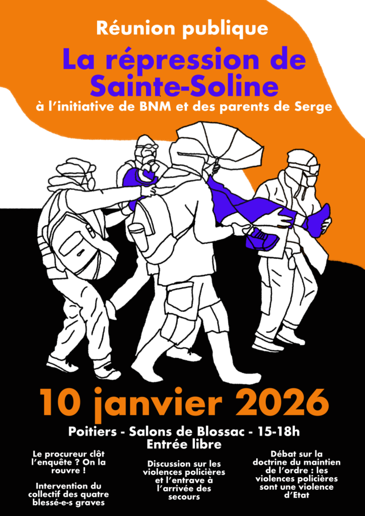 « La répression de Sainte-Soline » Réunion publique de BNM et les parents de Serge
