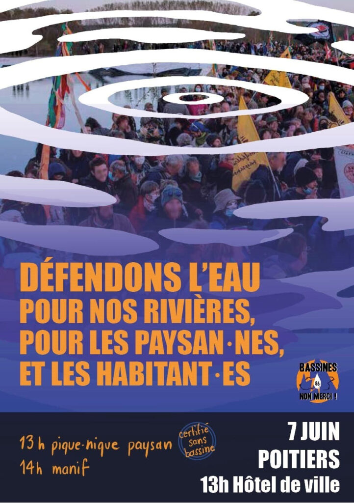 C’est dans ce contexte que nous avons choisi d’intervenir en annonçant une prochaine mobilisation anti-bassines à Poitiers le 7 juin. (A 13 h, Hôtel de ville, Pique-nique paysan et 14 h manifestation) (…) Appel ci-joint.