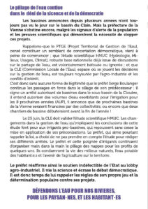 Nos mobilisations ont jusqu’ici empêché tout démarrage de chantier dans le département, montrons de nouveau ensemble notre détermination à défendre l’eau pour nos rivières, pour les paysan-nes et les habitant-es du bassin du Clain.