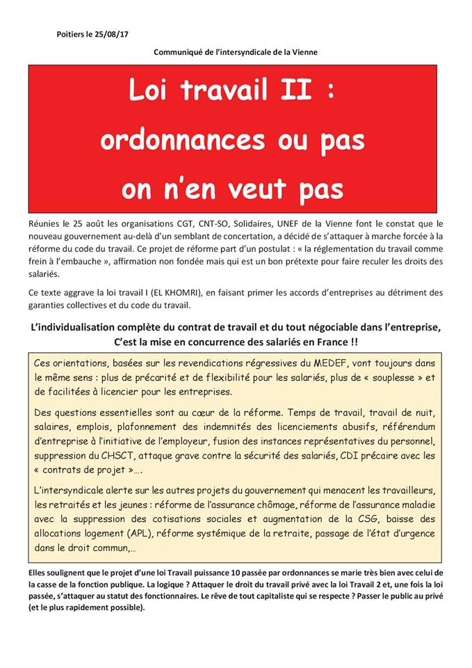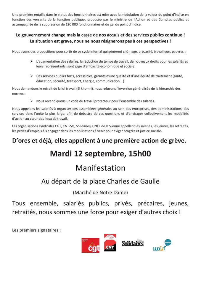Manifestation et grève dans le 86 contre cette réforme de la loi travail