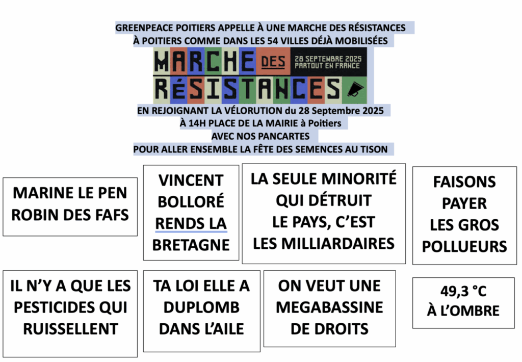 - Soyons uni.es pour entrer en résistance et porter le projet d’un monde plus juste et plus solidaire, respectueux des limites planétaires #TimeToResist.