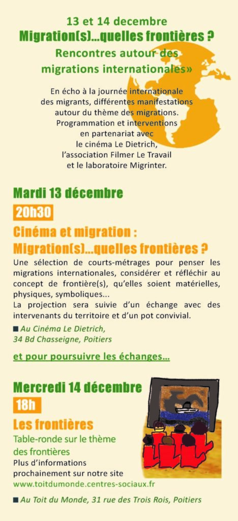 • “Migration(s)… quelles frontières ?” Projections – tables rondes