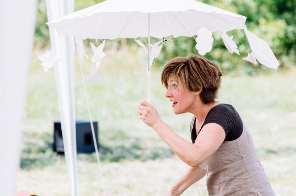 notre imaginaire. Charlotte nous invite à partir en voyage. Avec le papier, elle nous emmène parcourir mille paysages, un univers fait de blanc où tout est permis. Cheminant de surprise en poésie aux vibrations de l’accordéon, le spectateur prend les commandes : « Et maintenant, on va où ? ». Le temps est suspendu, une énergie presque magique plane dans la salle. Des cartes dessinées sortent de la valise et c’est au public d’écrire le déroulement de l’histoire.