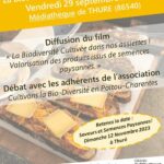 Participez au Ciné-Débat sur le thème de « La Biodiversité Cultivée dans nos assiettes ! Valorisation des produits issus de semences paysannes. » vendredi 29 septembre à 20h30 à la médiathèque de Thuré (13 rue Maurice Bedel 86 540 Thuré)
