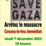 Rassemblement jeudi 7 décembre à 18 heures place Lepetit (place de l’ancien palais de justice). Un appel commun arrivera prochainement et noter qu’un rassemblement hebdomadaire est prévu tous les jeudis à 18 heures, place Lepetit. Faites circuler l’information.