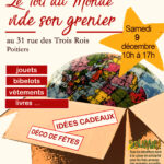 Vous trouverez bibelots, jouets, livres vêtements,… C’est samedi 9 décembre de 10 h à 17 h au Toit du Monde, 31 rue des Trois Rois à Poitiers.