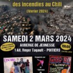 Nous organisons une soirée de solidarité pour venir en aide aux victimes des incendies dans la région de Valparaiso, au Chili. Les bénéfices seront intégralement reversés aux 74″ familles des étudiants et travailleurs de l’université de Playa Ancha (UPLA) à Valparaiso pour la reconstruction de leurs maisons et pour l’achat […]