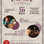 SOIRÉE CABARET DÎNER-SPECTACLES Samedi 30 mars 2024 | Salle de la Boivre à Lavausseau (86) Ouverture des portes à 19h ✨ 19h30 – Nico Marjo / chanson drôle et poétique ✨ 21h30 – « Est-ce ainsi que les Hommes vivent ? » de Léo Malouvet et Antoine Mornet / tour […]