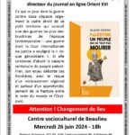 ATTENTION Changement de lieu : rendez-vous au Centre Socio-culturel de Beaulieu. Ancien rédacteur en chef du Monde Diplomatique, directeur du journal en ligne Orient XXI, auteur du livre « Palestine, un peuple qui ne veut pas mourir ».