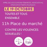 Samedi 19 octobre, dans de nombreuses villes du pays, les associations, organisations syndicales et organisations politiques féministes appellent à des rassemblements devant les palais de justices. A Poitiers, le collectif 8 mars donne rendez vous à 11h, place du marché Notre Dame pour une prise de parole avant de rejoindre […]
