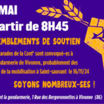Deux camarades de la Confédération paysanne sont convoqué·es à la gendarmerie de Vivonne ce 16 mai, très probablement suite à leur participation à la mobilisation du 16 novembre 2024 à Saint-Sauvant, contre la construction de la bassine SEV14. Pour rappel, lors de cette mobilisation, nous avions dénoncé que le projet […]