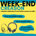 WEEK-END CREASON 7ème édition ! création collective d’une fiction sonore en 48h ! à AdLib, 130 avenue de la Libération, Poitiers C’EST QUOI ? Le concept est de se retrouver à une quinzaine maximum pour créer le temps d’un week-end une fiction sonore pensée, tournée et montée collectivement. Du cinéma […]