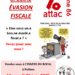 Mercredi 25 juin de 19 à 21 h, toutes et tous à l’Envers du Bocal pour le QUIZZ « spécial Evasion fiscale » d’ATTAC86. Dans la joie et la bonne humeur, venez évaluer vos connaissances : êtes-vous un.e bon.ne évadé.e fiscal.e ? Et n’hésitez pas à faire circuler l’information ! .