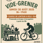 Vide-grenier du comité de quartier « Autour du Pont-Neuf », course de lenteur (!), fête du Pont-Neuf , bal et feu d’artifice à suivre,… (à la suite du report de celui du 14 juillet) Pour le vide-grenier, inscrivez-vous : infos sur l’affiche. Rendez-vous samedi 30 août ! .