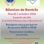 L’association Alternatiba Poitiers vous convie à sa réunion de rentrée qui aura lieu le mardi 7 octobre 2025 à partir de 19h à la M3Q (Maison des 3 Quartiers située au 25 rue du Général Sarrail à Poitiers). Vous trouverez l’affiche en pièce jointe. L’ordre du jour sera le suivant […]