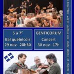 Balade en voix au Québec Samedi 29 novembre à 20h30 : L’Ensemble Vocal Quintus Vox invite, danse et chante avec 5 à 7², Bal québécois . et dimanche 30 novembre à 17 h : GENTICORUM en concert – Trio Québécois en tournée en France. https://www.genticorum.com/francais Complexe polyvalent de Quinçay Réservation conseillée sur […]