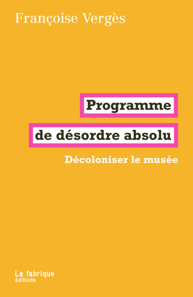 Dans Programme de désordre absolu : décoloniser le musée, Françoise Vergès invite à aller plus loin en réfléchissant à ce que signifierait la décolonisation de l’institution muséale occidentale. À travers quelques initiatives, menées à petite échelle et confrontées à de nombreuses contraintes, se dessinent des façons de penser et bâtir un post-musée.