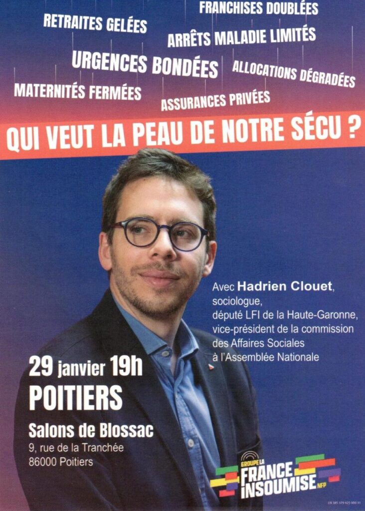 Poitiers. Qui veut la peau de notre Sécu ? Avec H. Clouet, député LFI, vice président de la commission sociale à l’Assemblée Nationale