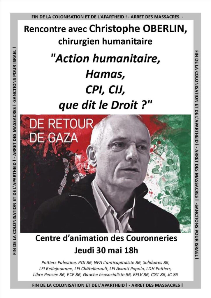 • Poitiers. Témoignage de retour de Gaza