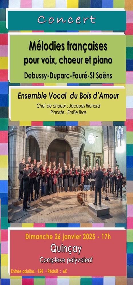 Quintus Vox a le plaisir d’inviter l’Ensemble Vocal du Bois d’Amour, dirigé par Jacques Richard, Piano Emilie Braz.