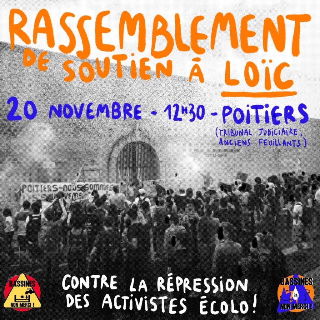 Rassemblement de soutien à Loïc ! Rendez-vous lundi 20 novembre à partir de 12h30 devant le tribunal judiciaire (ancien lycée des feuillants) de Poitiers