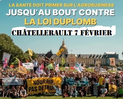 Châtellerault encore et toujours contre le ppl Duplomb Détails de l'événement Date: 7 février 2026 10:00 – 13:00 Catégories: en ligne Manifestation organisée par l’ Association Des Causes A Défendre et On Veut Des Coquelicots Châtellerault. Partager : Cliquez pour partager sur Facebook(ouvre dans une nouvelle fenêtre) Facebook Cliquer pour envoyer un lien par e-mail à un ami(ouvre dans une nouvelle fenêtre) E-mail Cliquez pour partager sur LinkedIn(ouvre dans une nouvelle fenêtre) LinkedIn Cliquez pour partager sur Telegram(ouvre dans une nouvelle fenêtre) Telegram Cliquez pour partager sur WhatsApp(ouvre dans une nouvelle fenêtre) WhatsApp Cliquer pour partager sur Mastodon(ouvre dans une nouvelle fenêtre) Mastodon Cliquer pour partager sur Bluesky(ouvre dans une nouvelle fenêtre) Bluesky