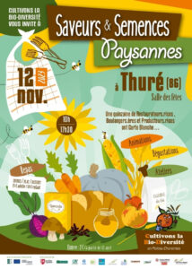 Le stand de l’association Cultivons la Bio-Diversité en Poitou-Charentes présentera aussi de nombreux légumes, des plantes portes graines et une animation sur le jus de betteraves avec différentes variétés. Vous pourrez également retrouver des partenariats avec une exposition de Thuré Ma Commune au fil de l’Histoire sur l’agriculture locale, le lycée agricole de Thuré et un stand de produits locaux. Un repas à base de produits locaux et issus de semences paysannes sera proposé sur réservation.