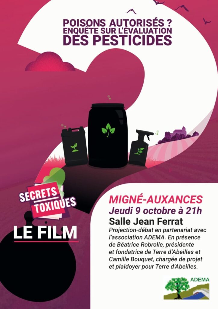 L’ADEMA vous invite à venir voir le film Secrets toxiques le 9 octobre à 21h à la salle Jean Ferrat à Migné-Auxances puis à débattre. L’entrée est libre