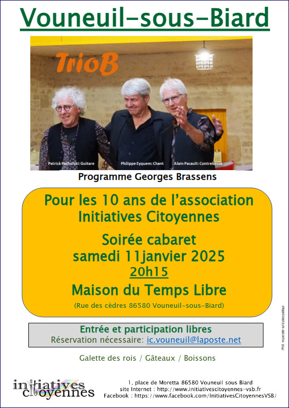 Pour ses 10 ans, notre association Initiatives Citoyennes organise cette soirée cabaret avec TrioB.