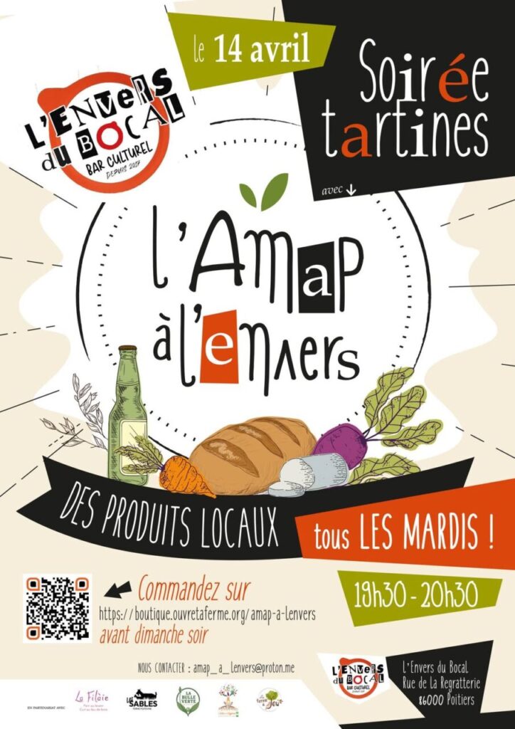 Mardi 14 avril de 19 h 30 à 20 h 30 : Soirée tartines avec l’AMAP à l’Envers…