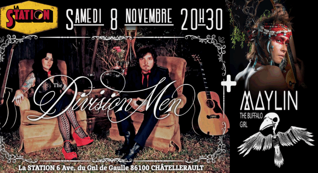 Samedi 08 novembre 2025 de 20h30 à 23h : THE DIVISION MEN, un duo texan formé à Berlin en 2008. Le groupe est constitué de J. Spencer Portillo (voix, guitare) et de son épouse Caroline Rippy Portillo (voix, basse). Leur nom est dérivé de l’idée d’artistes qui collaborent à travers le monde en dépit de l’endroit où ils se trouvent. Le duo vient de sortir son quatrième album Hymns And Fiery. On a l’impression d’être en balade sur les routes texanes et de traverser la frontière mexicaine. Ou d’écouter la bande originale d’un western poisseux et envoûtant.