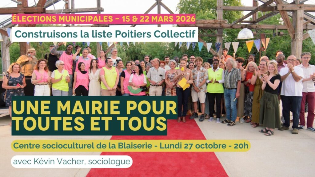 Ce moment d’échange et de débats sera déterminant pour valider le processus permettant à toutes et tous de se sentir légitime à figurer dans la liste de Poitiers Collectif.