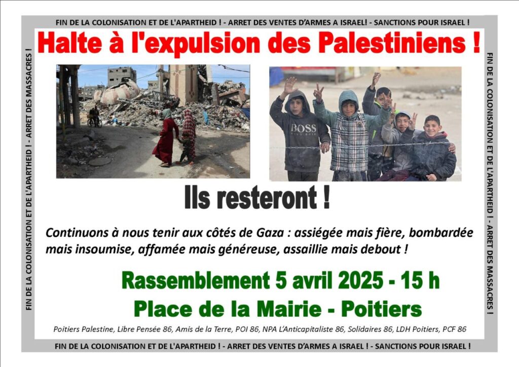 Rassemblement samedi 5 avril à 15 h place de la mairie à Poitiers.